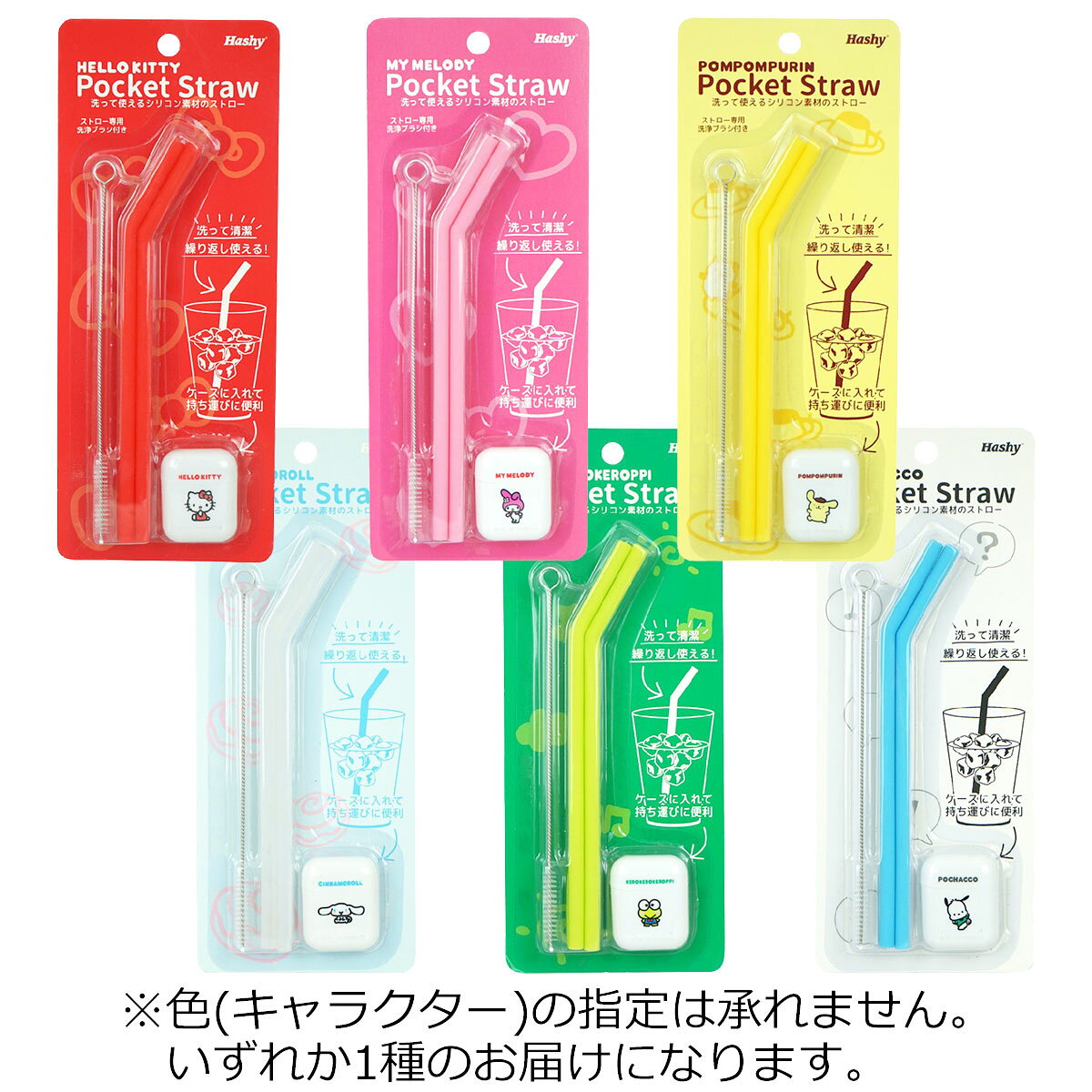 サンリオキャラクターズのプリントされた付属のケースにストローを小さくたたんで持ち歩き携帯できる専用ケース付! 種類:ハローキティ、マイメロディ、ポムポムプリン、シナモロール、けろけろけろっぴ、ポチャッコ ※いずれか1種のお届けです(種類指定不可) セット内容:ストロー2本、ケース1個、ストロー洗浄用ブラシ1本 サイズ:ストロー:内径0.5・外径0.7・長さ18.5/ケース:W3.5×D1.7×H4.3/ブラシ:径0.7×17.3(cm) 深さ14.5cmまでの容器で使用できます