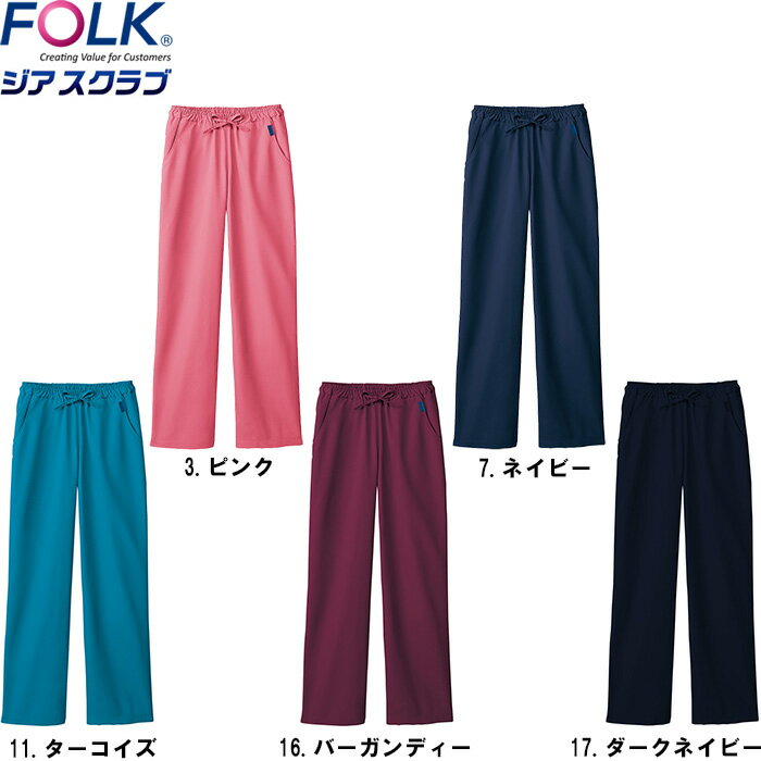 スクラブ 白衣 パンツ FOLK フォーク ジアスクラブ パンツ 5023SC SS-4L 感染対策 色落ちしない 漂白可 ウイルス対策 次亜塩素酸消毒可 5023SC メンズ レディース 男女兼用