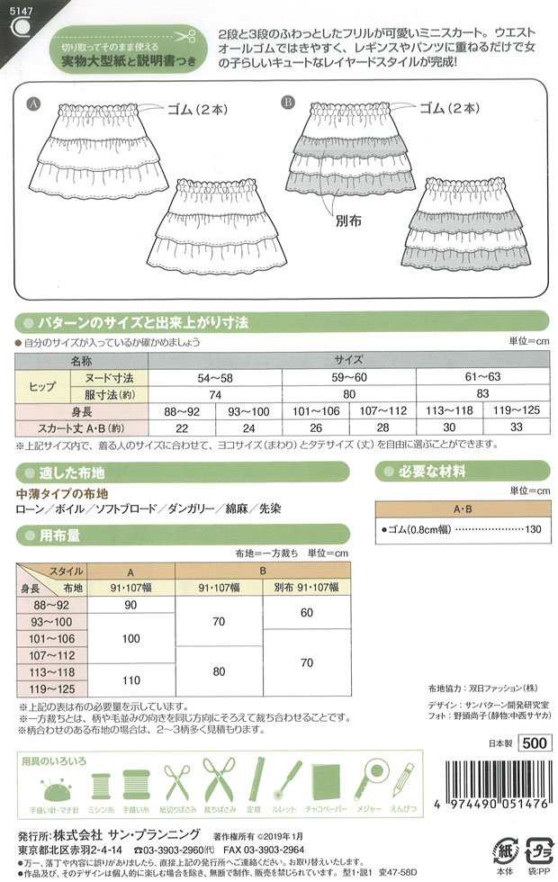 フィットパターン≪こども フリルミニスカート≫【こども女子(身長88〜125cm)】(5147) ※メール便での発送は、5個まで。 ★ その他のパターンはこちら!★ ★ 秋・冬向けのパターンはこちら!★ ★ 春・夏向けのパターンはこちら!★ 商品価格:550円 レビュー件数:0件 レビュー平均:0 購入する