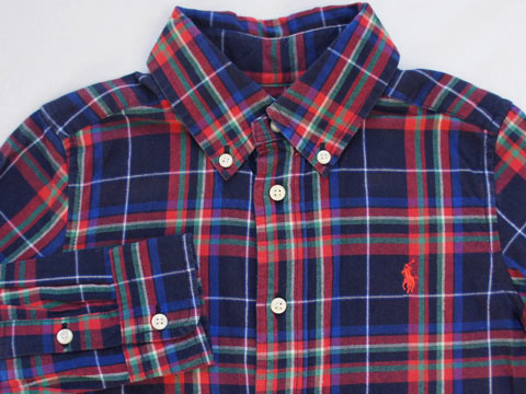 ラルフローレン lalph lauren アウトレット 子供服 男の子 4歳 110cm 長袖 シャツ チェック 紺 赤 ボタンダウン スモールポニー 春 秋 冬 ★
