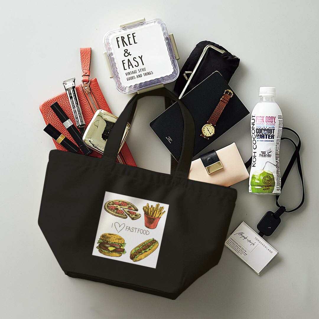 デザインランチバッグ キャンバス デイパック バッグ レディースバッグ トートバッグ ナチュラル 黒 black 007469 フード 食べ物 イラスト ピザ