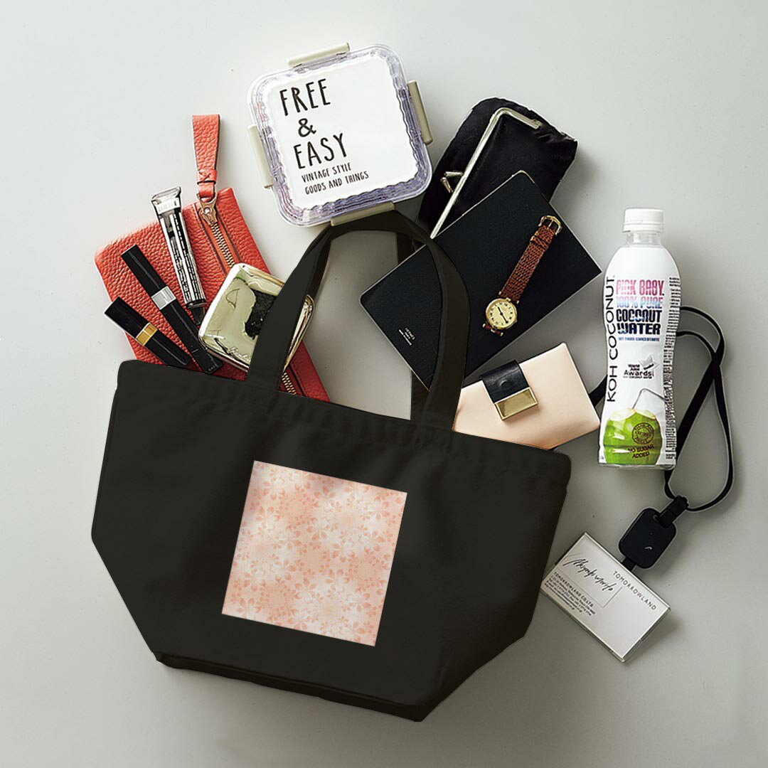 デザインランチバッグ キャンバス デイパック バッグ レディースバッグ トートバッグ ナチュラル 黒 black 005447 花 フラワー 模様