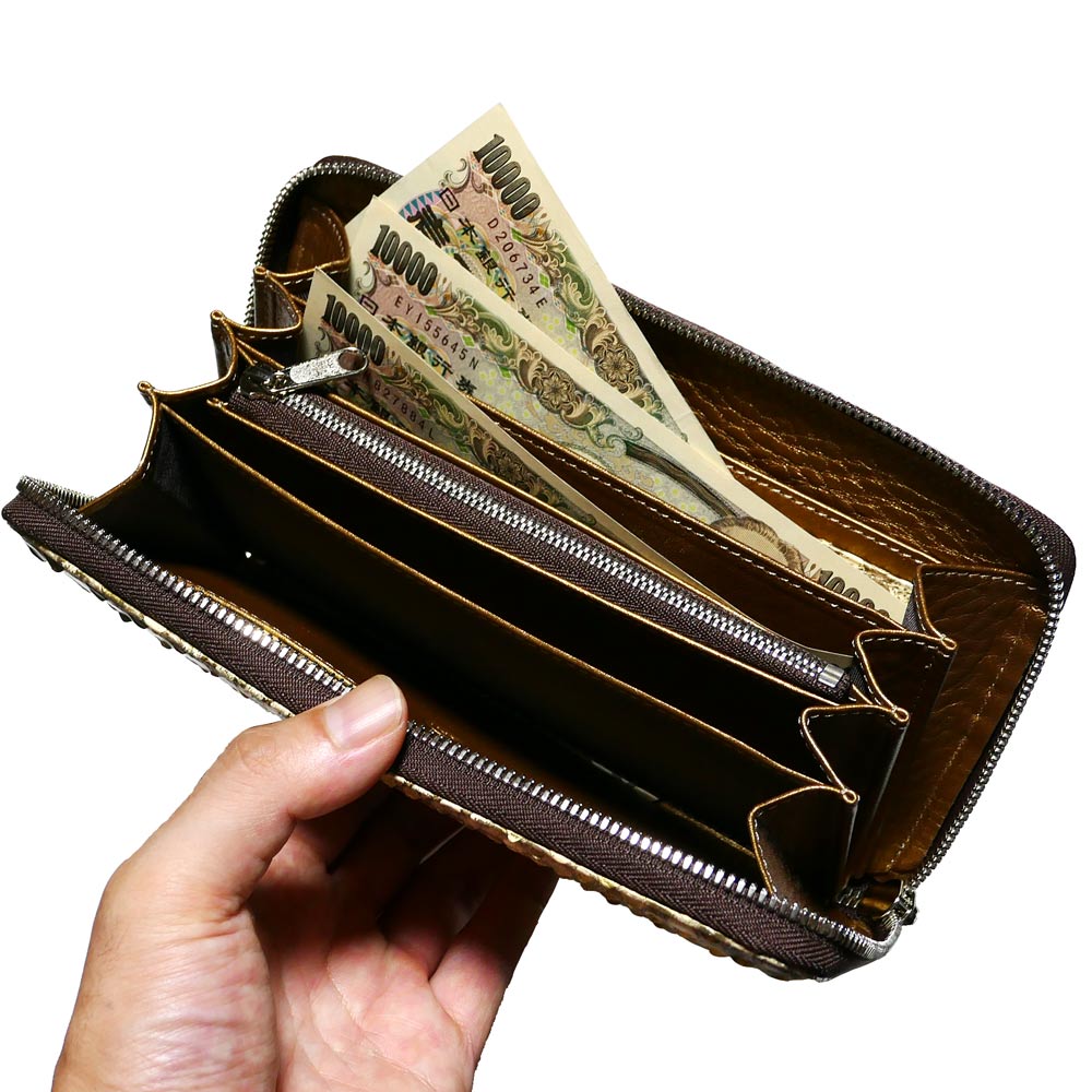 モラレスパイソン(ヘビ革)で仕上げた弊社オリジナル ファスナー長財布。