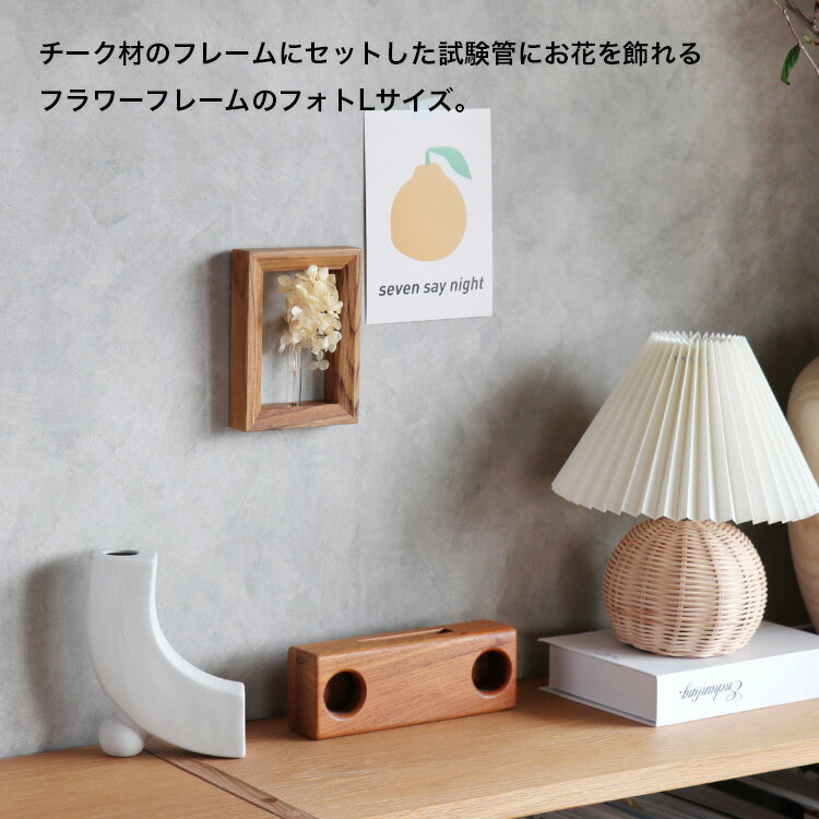 フラワーフレーム フォトLサイズ 一輪挿し ウッド フレーム 試験管 フラワーベース 花瓶 花器 木製 ウッド ガラス インテリア 雑貨 壁掛け おしゃれ かわいい